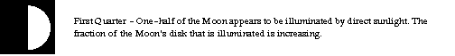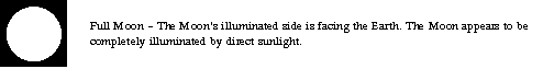 (d) Moonrise and moonset times are computed for exactly the same circumstances as for sunrise and sunset. However, moonrise and moonset may occur at any time during a 24 hour period and, consequently, it is often possible for the Moon to be seen during daylight, and to have moonless nights. It is also possible that a moonrise or moonset does not occur relative to a specific place on a given date.