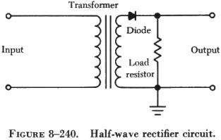 In figure 8-240 a diode is placed in series with a source of ac power and a load resistor. This is called a halfwave rectifier circuit.