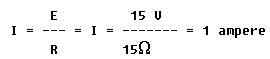 The Ohm's law formula for finding current is I = E/R. Since the battery voltage is 30 volts and the total circuit resistance is 15 ohms, the equation becomes